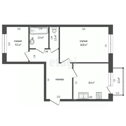 • ✅ Объект наибольшей площади: 55,4 м²