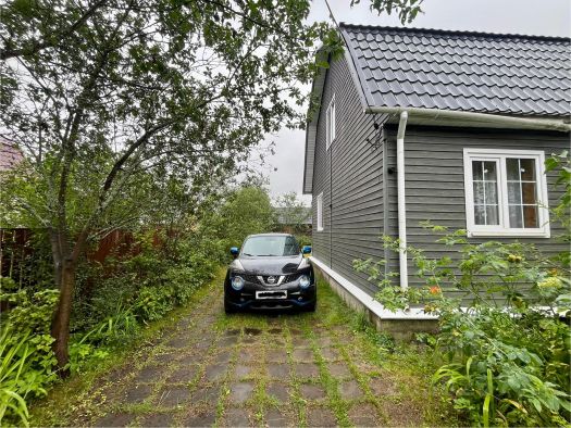Дом 2006 года постройки, площадью 50 кв.м. (без террасы), бревенчатый, 2-х этажный, на ленточном фундаменте. По планировке: на 1-м этаже: терраса, холл с лестницей на 2-й этаж, большая комната с печкой; на мансарде: холл и две изолированные комнаты.