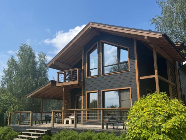 Арт. 100326761 Представляем Вашему вниманию дом в пяти минутах ходьбы до реки Вязь, рядом с Пестовским водохранилищем. Дом, площадью 113 кв.м., расположенный на участке площадью 24,6 сотки в Поселке Санатория Тишково, всего в 40 км от МКАД по Дмитровскому шоссе и 35 км по Ярославскому шоссе. Дом построен в 2023 году по технологии компании фахверк Домогацкого. Благодаря большому количеству панорамных окон, Вы сможете наслаждаться захватывающими видами природы из любой точки дома. Большим плюсом является расположение дома рядом с Пестовским водохранилищем в окружении соснового леса. Наличие индивидуального пирса с собственным пляжем обеспечит Вам высокий уровень отдыха. Особую уникальность дому придает наличие сауны-парилки Ферингер с отделкой из кедра и ольхи, которой можно пользоваться как хамамом. Экстерьер впечатлит Вас стильной и качественной отделкой исключительно из натуральных материалов: отделка из алтайского кедра внутри и снаружи дома. Идеальное расположение дома на участке позволит с легкость достроить на участке еще один дом. Дом полностью отделан и готов к проживанию, Вам всего лишь необходимо добавить к интерьеру мебель и декор, отвечающий Вашим предпочтениям. Первый этаж включает в себя прихожую, кухню-столовую с выходами на открытую террасу, гостиную с печью-камином Ферингер, санузел, зону СПА с парилкой, купелью из кедра и душевой кабиной, котельную (газовый котел Viessman). На втором этаже расположена одна спальня, холл с окном, который за счет возведения перегородки можно трансформировать в дополнительную комнату, санузел. Просторный участок 24,6 сотки имеет ровную прямоугольную форму. На участке проложены дорожки, установлено освещение, выполнен дренаж, проведена система полива. На участке высажены плодовые и хвойные деревья (яблони, туи, сосна), кустарники. На участке оборудована закрытая зона барбекю (25 кв.м.) с раздвижными панорамными окнами. Зона барбекю оборудована печью, мангалом, газовой плитой с духовкой, раковиной. Вокруг участка установлен забор. Кроме того, на участке имеется навес на два машиноместа, теплица, дровница, техническое помещение для садового инвентаря и техники. На участке достаточно места, чтобы возвести еще один дом. Все коммуникации предусмотрены: - современные очистные сооружения: отдельно для дома и отдельно для барбекю - скважина: 90 метров - электричество: 30 кВт (2 счетчика по 15 КВт), возможно подключить дополнительно 30кВт - имеется два вида газового обеспечения: газ магистральный (подведен к котлу) и газ сжиженный (газгольдер 10 куб.м.-как резервный вид топлива) - интернет оптоволокно Планировка: Первый этаж: прихожая, холл, кухня- столовая с выходами на террасу, гостиная с камином, зона СПА, санузел, котельная. Второй этаж: просторный холл, спальня, санузел. Камерный Поселок санатория Тишково расположен всего в 40 км от МКАД по Дмитровскому или Ярославскому шоссе, в непосредственной близости от Пестовского водохранилища и густого хвойного лесного массива. Посёлок расположен в экологически чистой зоне федерального курорта Тишково, что дарит уникальную возможность каждый день вдыхать чистейший воздух, погружаясь в атмосферу спокойствия и гармонии с природой. В окрестностях посёлка располагаются многие достопримечательности: Никольская церковь, уникальный объект культурного и природного на
