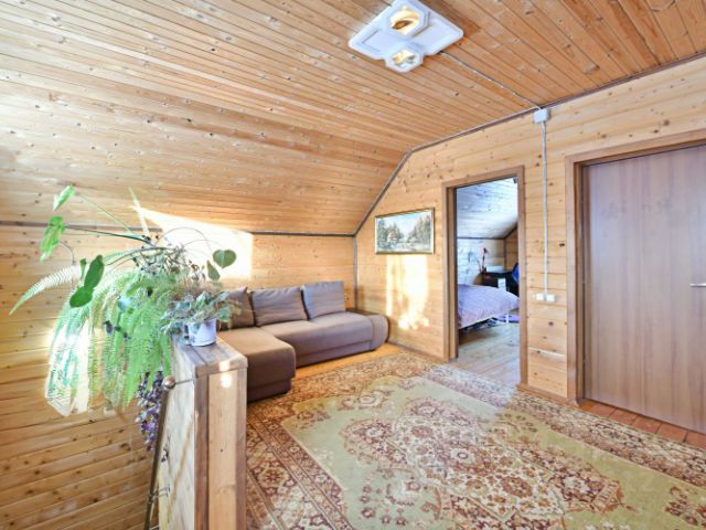 Участок 9,57 сот. правильной формы расположен в с/т "Надежда" возле с. Комягино. На участке 2-уровневый бревенчатый дом 99 кв. м. Год ввода в эксплуатацию 2009. Категория земель: земли сельхозназначения. Вид разрешенного использования: для садоводства. Участок ровный, обработанный, с газоном, огорожен забором из: профлист/рабица. Участок имеет два входа с противоположных улиц. На участке имеются легкие постройки: сарай, летний душ, туалет. Есть действующая скважина глубиной 28 м. Дом выполнен из бревна, внутри обшит вагонкой. Фундамент и цоколь сделан из цементных блоков. Кровля стальная фальцевая. В доме имеется капитальный погреб глубиной 2 м. К дому пристроена терраса. На втором этаже мансарда. Есть возможность подключения к дому трехфазного напряжения (прямой договор с россетью) и газопровода. В 15 мин. Пешком от участка находится остановка общественного транспорта, сетевой супермаркет и маркетплейс расположены в 3 мин. езды. Лес - рядом с участком. Продам элитный дом в деревне Зимогорье Московской области.