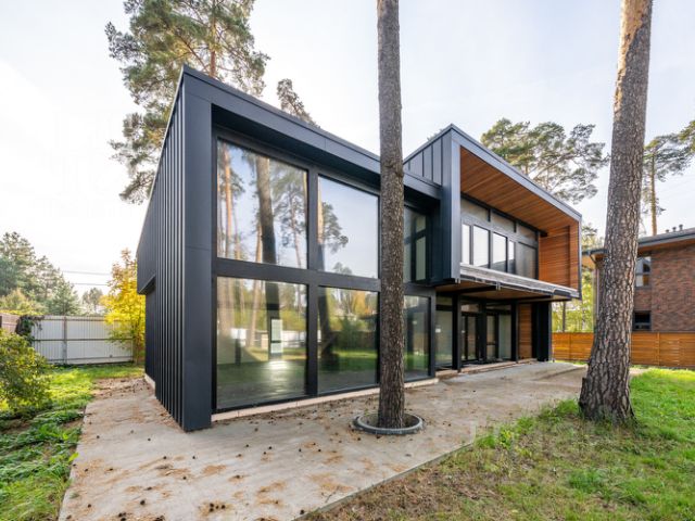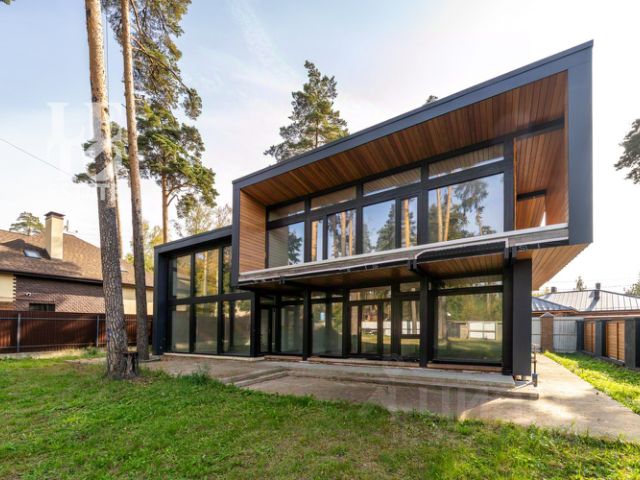 Особенности: новый дом, премиальные материалы и бренды, готовность под тапочки, высокие потолки (1 этаж 3,7 м, 2 этаж 4,2 м в коньке), закрытая панорамным остеклением веранда, дровяной камин в гостиной и печь у барбекю, отдельное строение с гаражом и полноценным гостевым блоком.