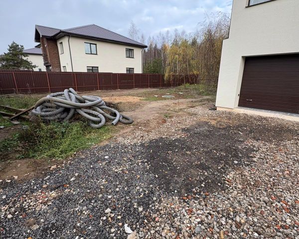 Участок с ухоженным газоном, с различными деревьями - дубы, березы, ели, туи, много сосен. Участок дренирован, оборудован системой полива, дорожками, освещен.