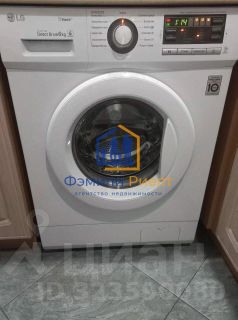 Остаётся: встроенная кухня с техникой (стеклокерамическая плита, духовой шкаф, вытяжка, посудомоечная машина, холодильник), стиральная машина, большая кровать, шторы, зеркало с подсветкой — можно не тратиться на обустройство.