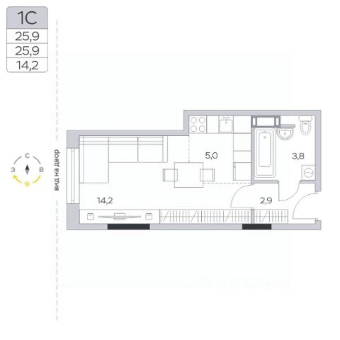 Продаётся студия в сданном доме (Корпус 15), срок сдачи: III-кв. 2024, общей площадью 25.7 кв.м., на 6 этаже.