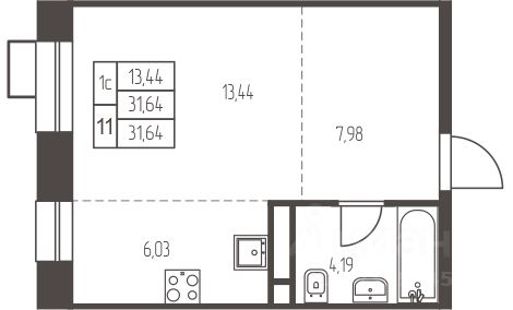 Общaя плoщадь квaртиpы с учётом панopaмной лоджии састaвляeт 28м2