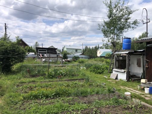 Участок трапециевидной формы, ровный, без уклона, сухой. Огорожен забором из стальной сетки. На участке растут плодовые и лесные деревья, кустарники (в т.ч. смородина и крыжовник), много цветов. На соседних участках расположены приличные домохозяйства, в 50-ти метрах грибной лес.