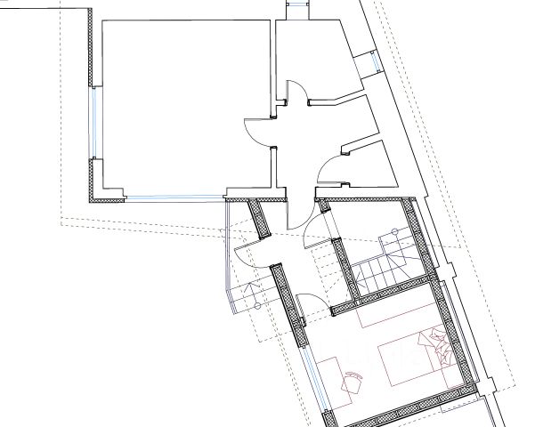 На первом этаже: Кухня-гостиная с камином 44,5 кв.м, выход на террасу 11,9 кв. м., спальная комната 12.1 кв.м, бойлерная 2,01 кв.м, небольшой подвал и просторный СУ 5 кв.м.