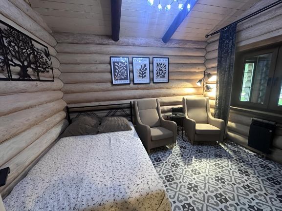 Дом для двоих с сауной "Villa Romantica" расположена в 27 км от МКАД по Ярославскому шоссе, на одном из самых экскурсионных направлений. На благоустроенном участке 12 соток расположено два дома, в аренду предлагается один из них. На участке: Ландшафтный дизайн, Газон, Декоративные дорожки, Лесные и декоративные деревья. Беседка для приготовления пищи на огне с мангалом и патио. Качели ,шезлонг. Рядом лес, в котором зимой можно гулять, кататься на лыжах, а летом собирать грибы и ягоды. В пешей доступности располагается инфраструктура поселка Лесной, которая включает в себя различные магазины в том числе сетевые, Дом культуры, Храм. Доставка Вкус Вилл, Глобус ,Пятерочка и т.д. Парковка машин: Стоянка на территории участка на 1-автомобиль. Транспортная доступность Добраться до Villa Romantica можно как на личном, так и на общественном транспорте. На личном транспорте: по Ярославскому шоссе до поселка Лесной. На общественном транспорте: на электропоезде от Ярославского вокзала до станции Пушкино или Зеленоградская. Villa Romantica отличный выбор для проведения романтического уикенда. ОПИСАНИЕ ДОМА Дом площадью 70 кв.м. в стиле прованс, построен и отделан экологически чистыми материалами. В доме имеется гостиная с камином и диваном, кровать, а также большая отапливаемая меблированная терраса с круговым панорамным остеклением, полностью оснащенная кухня: посудомоечная машина, холодильник, электрочайник, кофеварка, тостер, вся необходимая посуда для приема и приготовления пищи. В доме оборудована сауна с предбанником. В ванной комнате - большая душевая кабина с возможностью обливания холодной водой после сауны. Гостям предоставляются туалетные принадлежности, халаты, тапочки, постельное белье и полотенца, утюг и гладильная доска, стиральная машина, цифровое телевидение, безлимитный интернет с доступом по Wi-Fi. Минимальной количество дней бронирования 2 суток. Заезд с 15:00, выезд 12:00. Формат дома рассчитан на двоих человек. Возможно размещение с ребенком и питомцем (по согласованию)