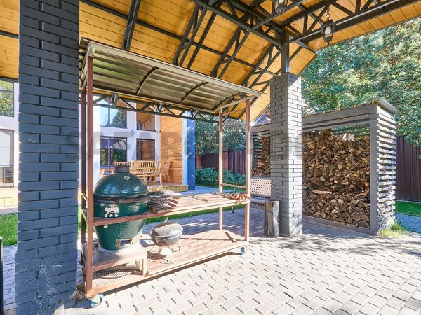 Большой мангал с шампурами. Веранда, закрытая от дождя и снега.
