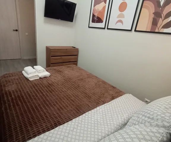 Кoмната: 1 двуспальная, 1 диван кровать, стенка с телевизором LG Smart TV 40', пуфик, напольная вешалка для одежды.